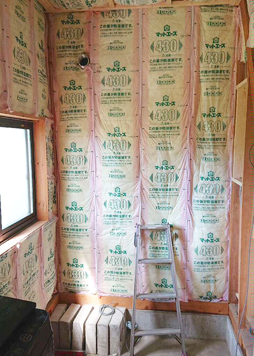 新しいドアが入ります。開口部が狭くなるので、ニ枚引き戸より断熱が良いです。