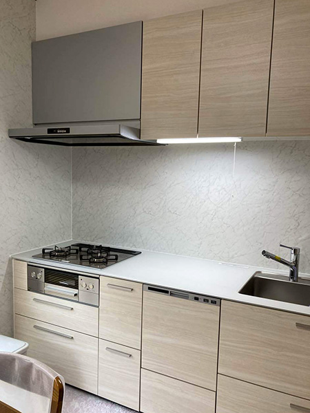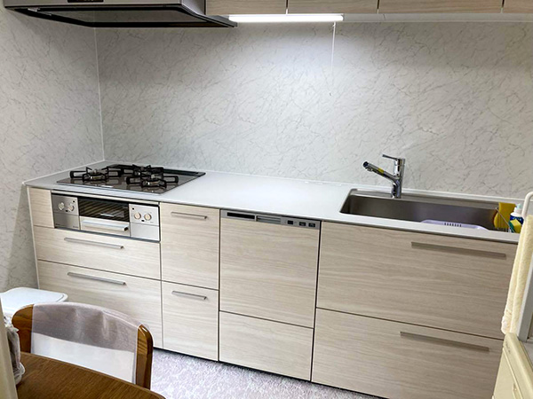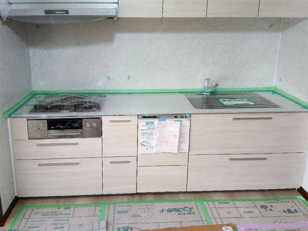 住みながら水まわり(特にキッチン)の工事をするのは、荷物の移動があったり、生活に制限ができたりと何かと大変ですが、快くご協力いただきました。