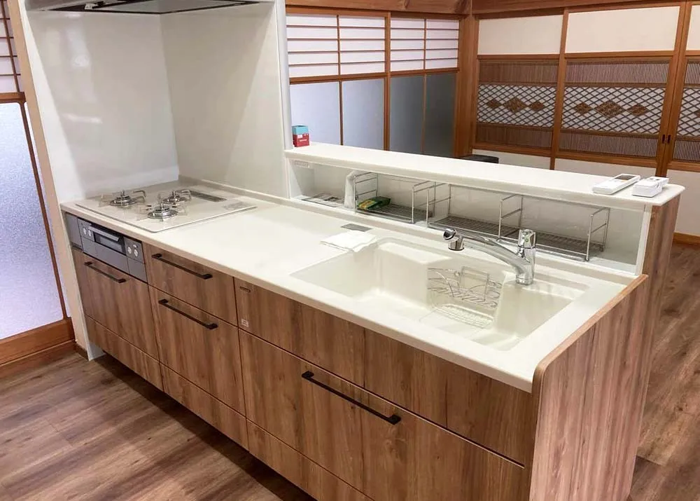 | 使用商品 | キッチン:リフィット(タカラスタンダード) 風呂:プレデンシア(タカラスタンダード) トイレ:アラウーノS(Panasonic)、ネオレストAS(TOTO) 洗面台:Vシリーズ(TOTO) 窓:サーモスⅡ(LIXIL) 内窓:インプラス(LIXIL) |