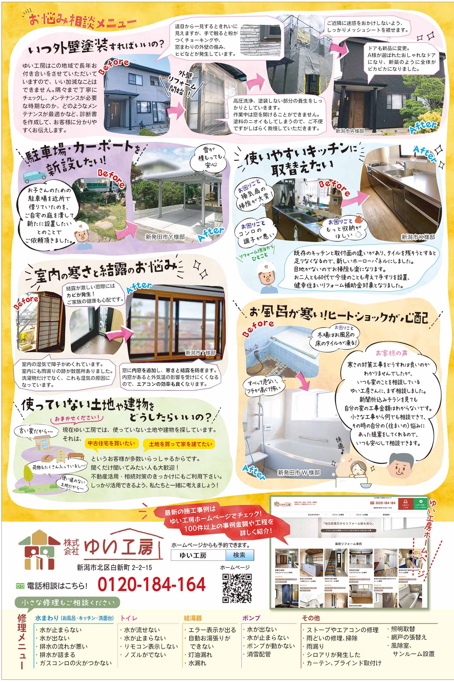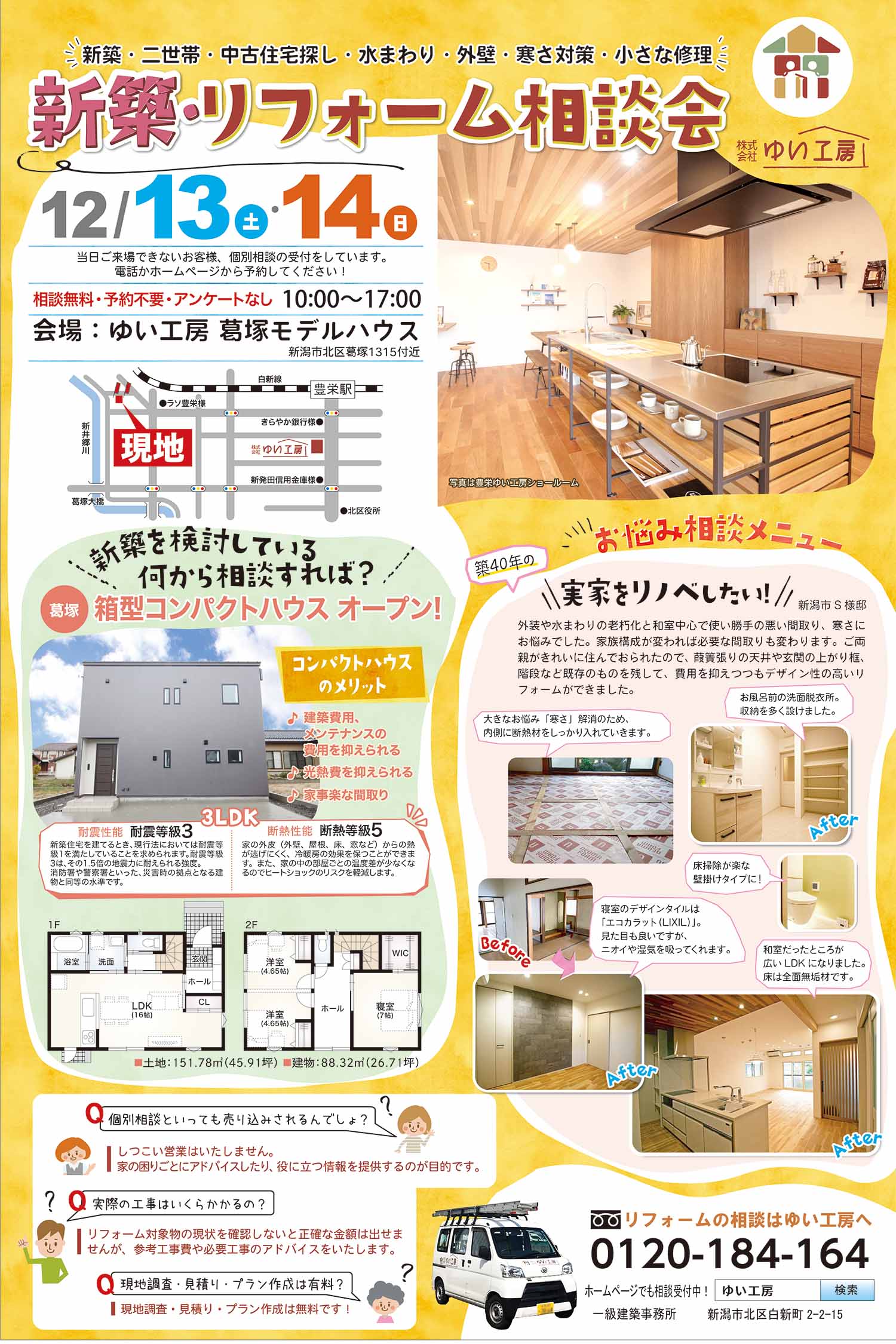 聞くだけOK!来場アンケートといって連絡先を書いてもらうなどの営業行為はしておりません。心配せずにご利用下さい。話を聞いてみて、リフォームをしないという決断ももちろんアリです。判断の参考にしていただければ幸いです。